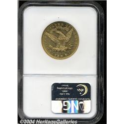 <B>1889<$10> MS61 NGC.</B></I> The low mintage (4,485 pieces) 1889 is the rarest eagle produced after 1877. This coin is typical of the issue in that both sides display appreciable reflectivity in the fields despite a scuffy overall appearance. On the other hand, this coin is atypical in that most extant 1889 eagles fail to penetrate the Mint State barrier. Every last feature is fully defined and orange-gold in color beneath delicate pink undertones. Population: 16 in 61, only 4 finer (4/04). <BR><BR><B>Important notice:</B> Heritage usually auctions material at the rate of 200-250 lots per hour. On some occasions eBay Live bid software or the Internet may not be able to keep up with the pace of the auction. We recommend placing a realistic absentee bid now as insurance to avoid disappointment. Occasionally the auctioneer may eliminate or reject an eBay Live bid, and the auctioneer may also reopen a lot after the close of the eBay live bidding (usually because we missed an audience bid), and may reject your bid even if it shows you as the winning bidder. By bidding via eBay Live, you agree that Heritage may award the lot to another bidder at its sole discretion under the circumstances described above or any other reasonable circumstances. Since eBay bids are not shown to us until we open the lot on the floor, we treat those bids just like floor bids. In most cases the floor responds before the eBay bid is presented to us, due to Internet lag time, so for consistency we have made it a policy that floor bids are always considered first over tie eBay live bids. Also please note that all Heritage lots purchased through eBay Live carry a 20% Buyer's Premium. Please make sure you read the Terms and Conditions before you bid.