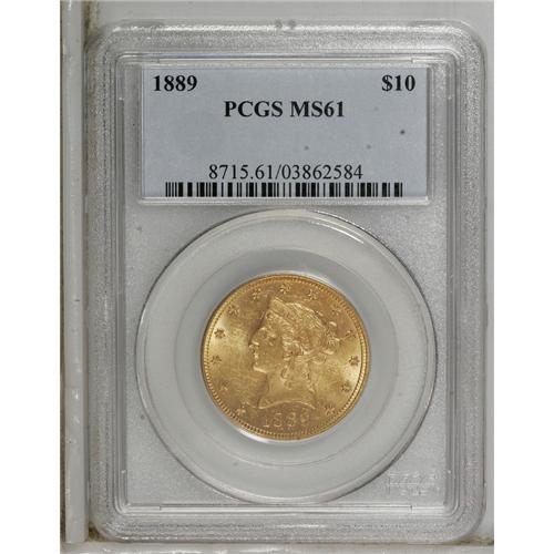 1889 $10 MS61 PCGS. This low-mintage date (4,440 busin