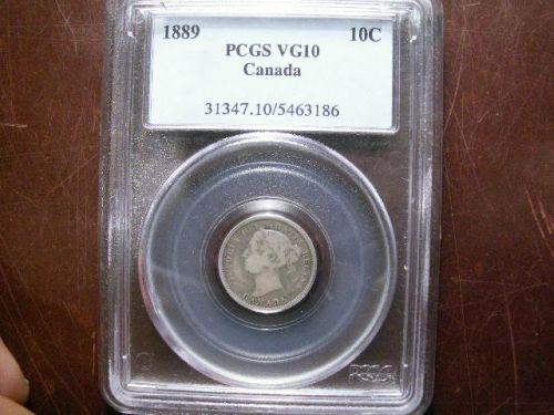 1889 10¢ PCGS VG10. A nice key date coin with strong visible date.