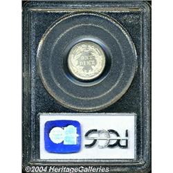<B>1889<10C> PR64 Cameo PCGS.</B></I> Boldly struck and flashy with a few obverse freckles of light pearl-gray patina. A lovely representative of this scarce proof issue. Just 711 pieces were struck. Population: 3 in 64 Cameo, 6 finer (8/04). <BR><BR><B>Important notice:</B> Heritage usually auctions material at the rate of 200-250 lots per hour. On some occasions eBay Live bid software or the Internet may not be able to keep up with the pace of the auction. We recommend placing a realistic absentee bid now as insurance to avoid disappointment. Occasionally the auctioneer may eliminate or reject an eBay Live bid, and the auctioneer may also reopen a lot after the close of the eBay live bidding (usually because we missed an audience bid), and may reject your bid even if it shows you as the winning bidder. By bidding via eBay Live, you agree that Heritage may award the lot to another bidder at its sole discretion under the circumstances described above or any other reasonable circumstances. Since eBay bids are not shown to us until we open the lot on the floor, we treat those bids just like floor bids. In most cases the floor responds before the eBay bid is presented to us, due to Internet lag time, so for consistency we have made it a policy that floor bids are always considered first over tie eBay live bids. Also please note that all Heritage lots purchased through eBay Live carry a 20% Buyer's Premium. Please make sure you read the Terms and Conditions before you bid.