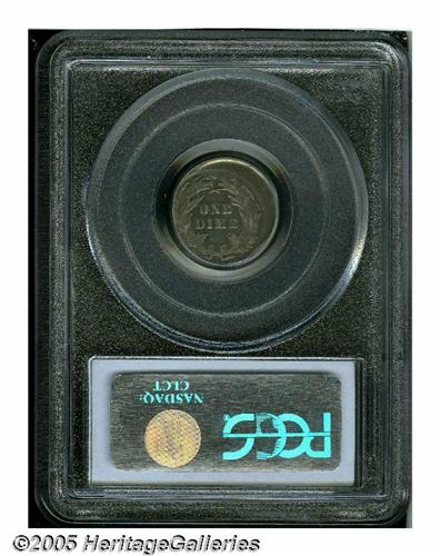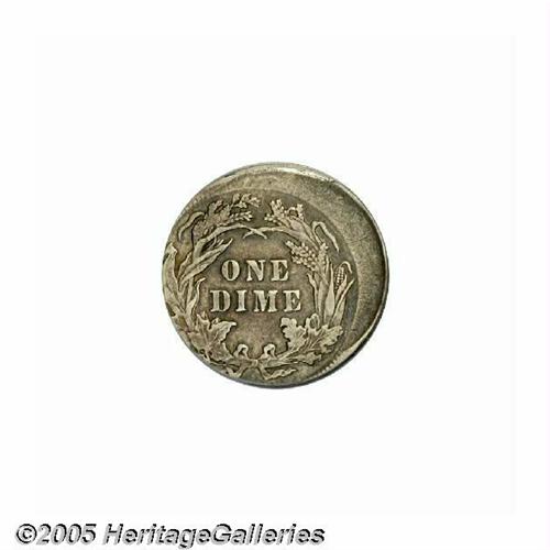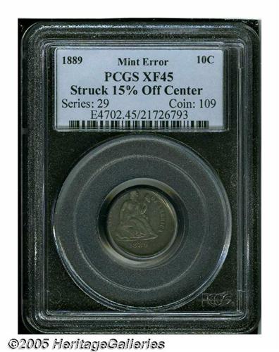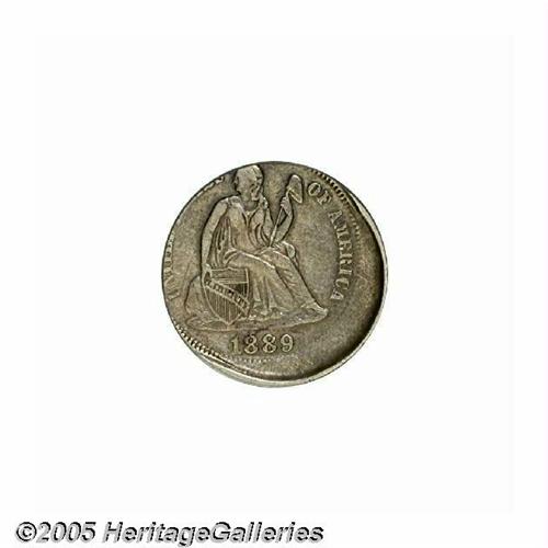<B>1889<10C> Seated Dime--Struck 15% Off Center--XF45 PCGS.</B></I> Struck off center toward 10:30, much of UNITED STATES is absent from the mint error. Light lime-gold and lavender patina. On the reverse, the unstruck portion has some illegible, lightly engraved cursive graffiti from a proud prior owner.<BR><I>From The Larry Rausch Collection.</B></I>
