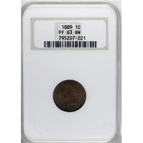 <B>1889 1C PR63 Brown NGC.</B></I> NGC Census: (13/96). PCGS Population (17/70). Mintage: 3,336. Numismedia Wsl. Price for NGC/PCGS coin in PR63: $140. (#2354)<BR><BR><B>Coin Engraver:</B> James B. Longacre<BR><BR><b>Shipping:</b> Coins & Currency (<a target="_blank" href="http://www.heritageauctions.com/common/shipping.php">view shipping information</a>)