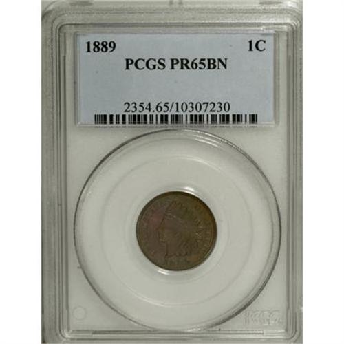 <B>1889 1C PR65 Brown PCGS.</B></I> PCGS Population (25/2). NGC Census: (34/18). Mintage: 3,336. Numismedia Wsl. Price for NGC/PCGS coin in PR65: $268. (#2354)<BR><BR><B>Coin Engraver:</B> James B. Longacre<BR><BR><b>Shipping:</b> Coins & Currency (<a target="_blank" href="http://www.heritageauctions.com/common/shipping.php">view shipping information</a>\)