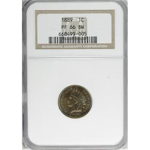 <B>1889 1C PR66 Brown NGC.</B></I> NGC Census: (18/0). PCGS Population (1/1). Mintage: 3,336. Numismedia Wsl. Price for NGC/PCGS coin in PR66: $432. (#2354)<BR><BR><B>Coin Engraver:</B> James B. Longacre<BR><BR><b>Shipping:</b> Coins & Currency (<a target="_blank" href="http://www.heritageauctions.com/common/shipping.php">view shipping information</a>\)