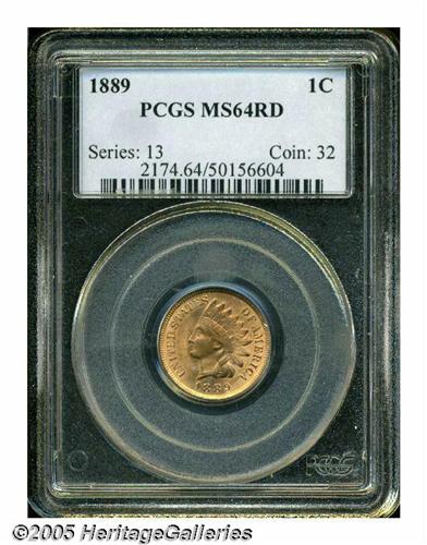 <B>1889<1C> MS64 Red PCGS.</B></I> Attractive coppery-gold patina overlays lustrous surfaces, and the design elements are well defined. A few grade-defining marks are noted on the Indian's cheek and hair, and the reverse displays a few small toning spots in the central area. Population: 80 in 64, 37 finer (3/05).