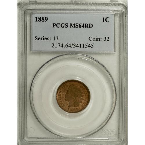 <B>1889 1C MS64 Red PCGS.</B></I> PCGS Population (87/37). NGC Census: (61/28). Mintage: 48,869,360. Numismedia Wsl. Price for NGC/PCGS coin in MS64: $352. (#2174)<BR><BR><b>Shipping:</b> Coins & Currency (<a target="_blank" href="http://www.heritageauctions.com/common/shipping.php">view shipping information</a>)
