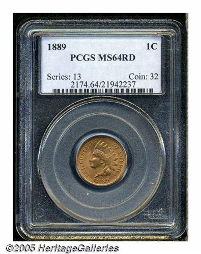 <B>1889<1C> MS64 Red PCGS.</B></I> Slightly mellowed, full-red color with nice definition and a few tiny spots visible under magnification.