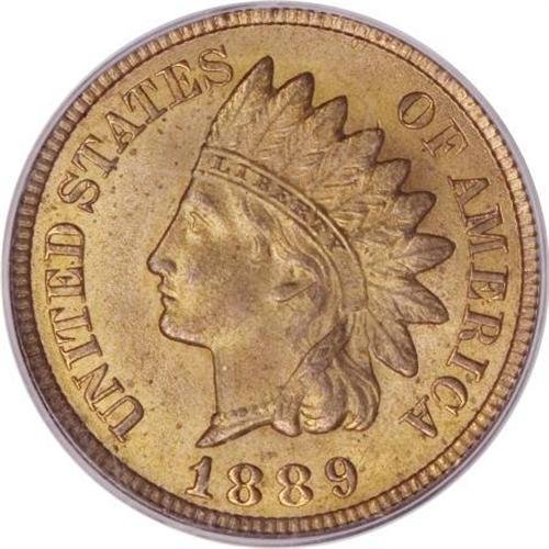 <B>1889 1C MS65 Red PCGS.</B></I> This MS65 Red Indian cent is well defined throughout with even, glowing mint red luster over each side. All four diamonds are bold. Devoid of contact marks, though a handful of light flecks are visible on both obverse and reverse. With respect to survivability of this issue, Richard Snow (2006) says: "As with other dates of this era, these were workhouse coins that stayed in circulation long after the design was changed in 1909. High-grade examples survived only by chance." Population: 31 in 65 Red, 6 finer (6/07).<BR><BR><b>Shipping:</b> Coins & Currency (<a target="_blank" href="http://www.heritageauctions.com/common/shipping.php">view shipping information</a>)