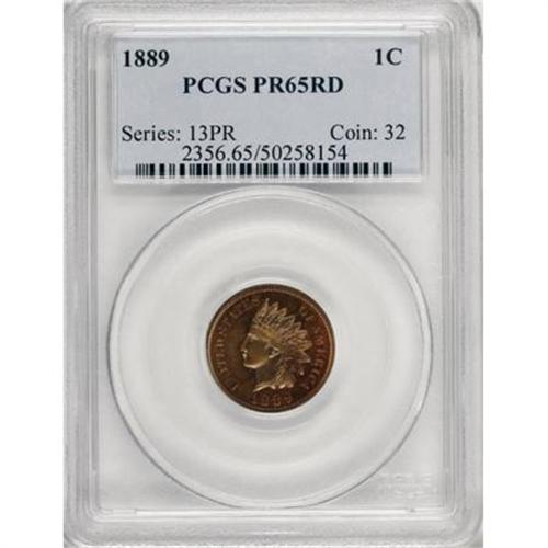 <B>1889 1C PR65 Red PCGS.</B></I> The margins of this striking Gem are rich reddish-orange, while the centers are paler copper-gold with hints of green. Sharply struck and carefully preserved, a lovely Indian cent proof. Population: 16 in 65 Red, 8 finer (10/07).<BR><BR><B>Coin Engraver:</B> James B. Longacre<BR><BR><b>Shipping:</b> Coins & Currency (<a target="_blank" href="http://www.heritageauctions.com/common/shipping.php">view shipping information</a>)