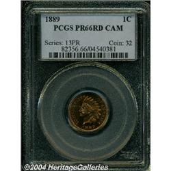 <B>1889<1C> PR66 Red Cameo PCGS.</B></I> Among the finest certified survivors of this 1880s production, both sides are ablaze with sunset-orange luster. A splendidly attractive coin with superb, mark-free surfaces. The fields are moderately reflective and only the smallest of carbon flecks limit the already high grade. Population: 1 in 66 Cameo, none finer (9/04). <BR><BR><B>Important notice:</B> Heritage usually auctions material at the rate of 200-250 lots per hour. On some occasions eBay Live bid software or the Internet may not be able to keep up with the pace of the auction. We recommend placing a realistic absentee bid now as insurance to avoid disappointment. Occasionally the auctioneer may eliminate or reject an eBay Live bid, and the auctioneer may also reopen a lot after the close of the eBay live bidding (usually because we missed an audience bid), and may reject your bid even if it shows you as the winning bidder. By bidding via eBay Live, you agree that Heritage may award the lot to another bidder at its sole discretion under the circumstances described above or any other reasonable circumstances. Since eBay bids are not shown to us until we open the lot on the floor, we treat those bids just like floor bids. In most cases the floor responds before the eBay bid is presented to us, due to Internet lag time, so for consistency we have made it a policy that floor bids are always considered first over tie eBay live bids. Also please note that all Heritage lots purchased through eBay Live carry a 20% Buyer's Premium. Please make sure you read the Terms and Conditions before you bid.