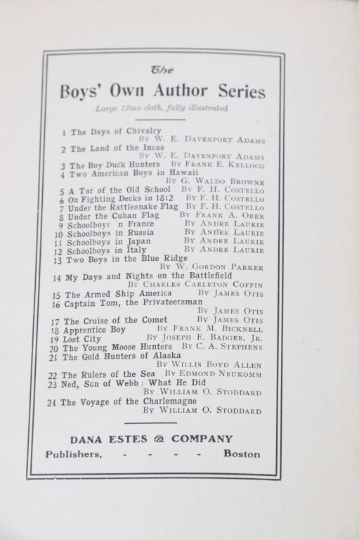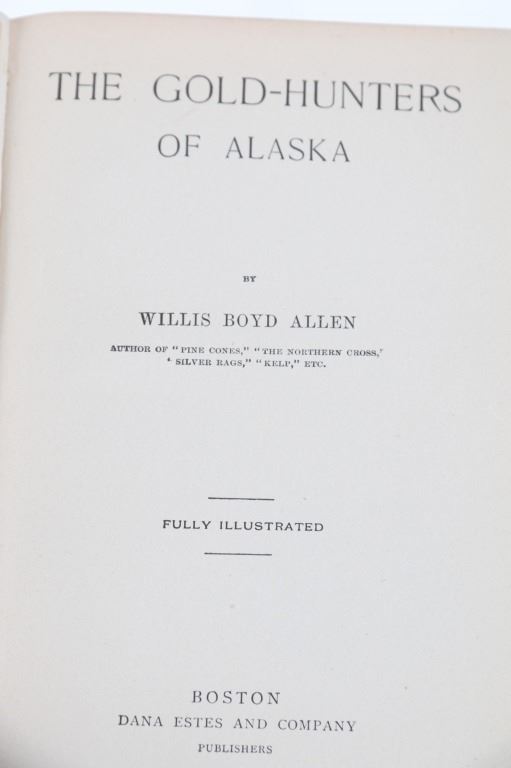 Featured in this lot is this 1889 first edition The Gold Hunters of Alaska by Willis Boyd Allen. The book is written by Willis Boyd Allen, author of "Pine Cones," "The Northern Cross," "Silver Rags," "Kelp," Etc. This is a fully illustrated copy and published by Dana Estes and Company. The condition of this book is good with wear consistent with age but otherwise in good overall condition. The measurements of this book are 7 3/4" x 5 1/2".