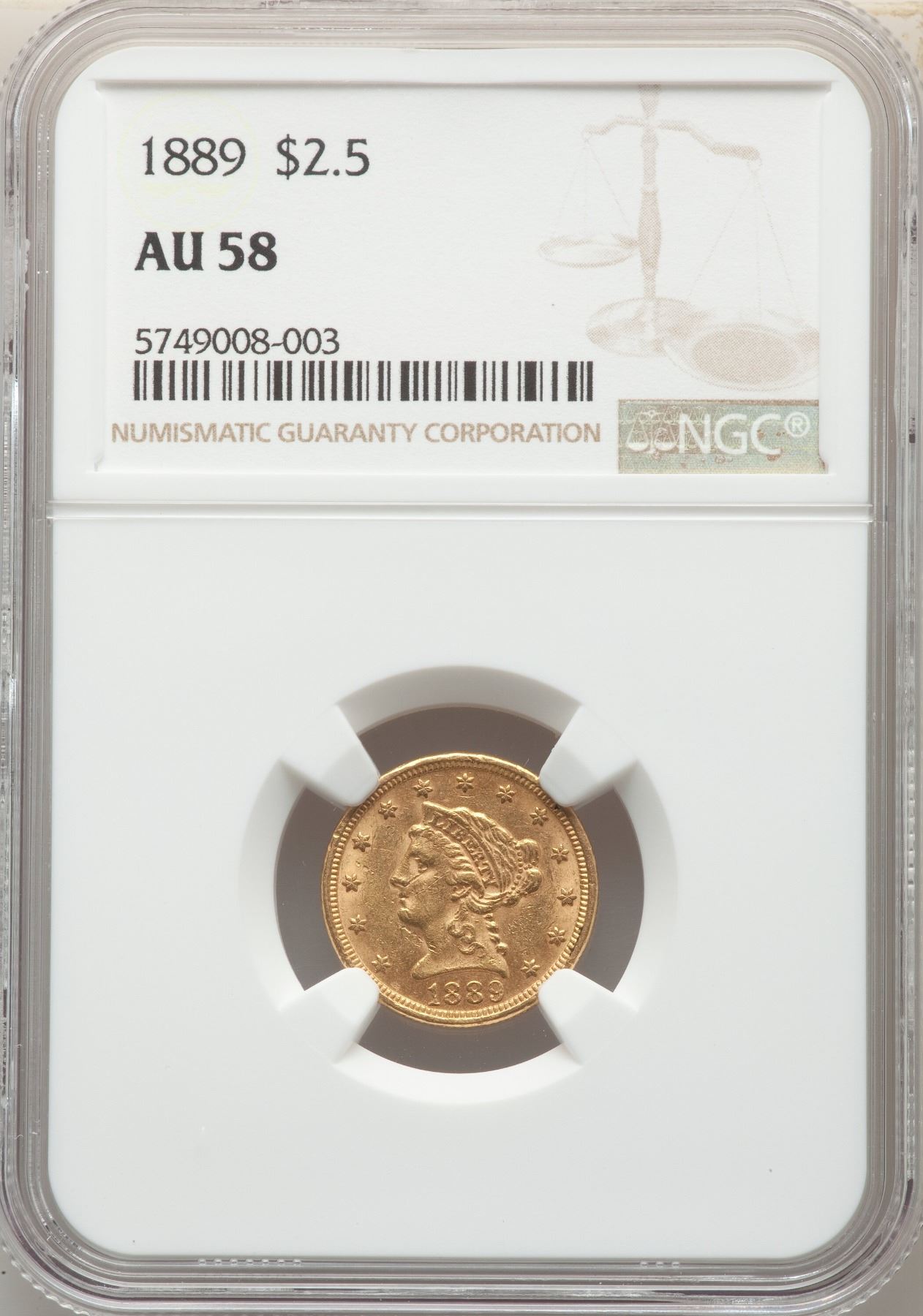One 1889 $2 1/2 Liberty Head Quarter Eagle Gold Coin NGC AU58.