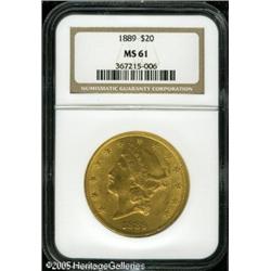 1889 $20 MS61 NGC. A low mintage of just 44,111 pi