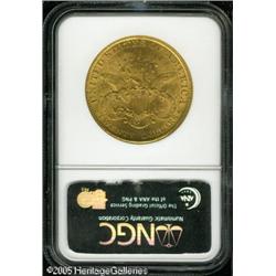 <B>1889 $20 MS61 NGC.</B></I> A low mintage of just 44,111 pieces, but not as rare (in lower grades) as that might imply. Uncirculated pieces like this one, however, are truly scarce. Subdued green-gold luster with a good look that is not overly impaired by the few visible marks.<BR><I>From The Richard J. Chouinard Collection of United States Coins, Part Two.</B></I> Lot:9203