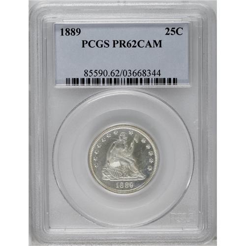 1889 25C PR62 Cameo PCGS. This attractive white Cameo 1889[25C] PR62 Cameo PCGS.