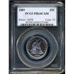 <TABLE cellSpacing=0 cellPadding=0 width="100%" bgColor=#000000 border=0><TBODY><TR><TD width="100%"><TABLE cellSpacing=1 cellPadding=3 width="100%" border=0><TBODY><TR><TD width="100%" bgColor=#79735c><FONT face=arial color=#ffffff size=3><B>Description</B> </FONT></TD></TR><TR><TD width="100%" bgColor=#ffffff><FONT face=arial size=2><B>1889 25C PR64 Cameo PCGS.</B></I> Plum-rose toning lightly covers the surfaces of this nicely contrasted superb near-Gem proof. Seemingly pristine on the reverse with a couple of minute contact marks on the obverse that keep the piece from Gem. </FONT></TD></TR></TBODY></TABLE></TD></TR></TBODY></TABLE><BR><A name=PricesRealized></A><TABLE cellSpacing=0 cellPadding=0 width="100%" bgColor=#000000 border=0><TBODY><TR><TD width="100%"><TABLE cellSpacing=1 cellPadding=3 width="100%" border=0><TBODY><TR><TD width="100%" bgColor=#79735c><A name=PR><FONT face=arial color=#ffffff size=3><B>Previous Prices from Heritage Auctions</B> </FONT></A></TD></TR><TR><TD bgColor=#f6f6ed>No Prior Data Recorded </TD></TR><TR><TD bgColor=#ffffff><FONT face=arial size=1 ?>PLEASE NOTE: All prices realized reflect the final hammer price PLUS the buyer's premium in auctions that charge a buyer's premium. Each item has a notation at the top of the listing indicating whether that lot included a buyer's premium. Example: A item that sells with a final hammer price of $100 and a 20% buyer's premium will display with a price realized of $120. All information listed is intended to be as accurate as possible, but errors are possible. Please use this guide carefully and inform us of any inaccuracies. </FONT></TD></TR></TBODY></TABLE></TD></TR></TBODY></TABLE><BR><TABLE cellSpacing=0 cellPadding=0 width="100%" bgColor=#000000 border=0><TBODY><TR><TD width="100%"><TABLE cellSpacing=1 cellPadding=3 width="100%" border=0><TBODY><TR><TD width="100%" bgColor=#79735c colSpan=6><FONT face=arial color=#ffffff size=3><B>Price Guide*</B> </FONT></TD></TR><TR bgColor=#f6f6ed><TD align=middle><B>Grade</B> </TD><TD align=middle><B>Coin World<BR>(Trends)</B> </TD><TD align=middle><B>Numismedia<BR>Retail</B> </TD><TD align=middle><B>Numismedia<BR>Wholesale</B> </TD><TD align=middle><B>Coin<BR>Universe</B> </TD><TD align=middle><B>Heritage<BR>Value Index</B> </TD></TR><TR bgColor=#ffffff><TD align=middle>63</TD><TD align=right>---</TD><TD align=right>---</TD><TD align=right>---</TD><TD align=right>---</TD><TD align=right>$427.50</TD></TR><TR style="FONT-WEIGHT: bold" bgColor=#cccfdd><TD align=middle>64</TD><TD align=right>---</TD><TD align=right>---</TD><TD align=right>---</TD><TD align=right>---</TD><TD align=right>$603.00</TD></TR><TR bgColor=#ffffff><TD align=middle>65</TD><TD align=right>---</TD><TD align=right>---</TD><TD align=right>---</TD><TD align=right>---</TD><TD align=right>$1,720.75</TD></TR><TR bgColor=#ffffff><TD colSpan=6><FONT size=1>*All information listed is intended to be as accurate as possible, but errors are possible. No item may be returned or refused based on this information which is provided as a service to our customers. You should contact each pricing source directly to determine the accuracy of this information. </FONT></TD></TR></TBODY></TABLE></TD></TR></TBODY></TABLE><BR><TABLE cellSpacing=0 cellPadding=0 width="100%" bgColor=#000000 border=0><TBODY><TR><TD width="100%"><TABLE cellSpacing=1 cellPadding=3 width="100%" border=0><TBODY><TR><TD width="100%" bgColor=#79735c><FONT face=arial color=#ffffff size=3><B>Population Guide</B> </FONT></TD></TR><TR bgColor=#ffffff><TD align=middle><!-- Begin Output of Population Grid--><TABLE cellSpacing=0 cellPadding=0 width="100%" border=0><TBODY><TR><TD vAlign=center><TABLE cellSpacing=0 width="100%" border=1 cellsadding="3"><TBODY><TR><TD vAlign=center><TABLE cellSpacing=0 cellPadding=3 width="100%" border=1><TBODY><TR><TD vAlign=center align=middle bgColor=#f0f1e8 colSpan=2 <CENTER><FONT face=Arial size=2><B>PCGS Pop </B></FONT><CENTER></CENTER></TD><TD vAlign=center align=middle bgColor=#f0f1e8 colSpan=2><CENTER><FONT face=Arial size=2><B>NGC Pop</B></CENTER></FONT></TD></TR><TR><TD vAlign=center><FONT face=Arial size=2>(64)</FONT> </TD><TD vAlign=center align=right><FONT face=Arial size=2>2</FONT> </TD><TD vAlign=center><FONT face=Arial size=2>(64)</FONT> </TD><TD vAlign=center align=right><FONT face=Arial size=2>3</FONT> </TD></TR><TR><TD vAlign=center><FONT face=Arial size=2>(>64)</FONT> </TD><TD vAlign=center align=right><FONT face=Arial size=2>5</FONT> </TD><TD vAlign=center><FONT face=Arial size=2>(>64)</FONT> </TD><TD vAlign=center align=right><FONT face=Arial size=2>17</FONT> </TD></TR></TBODY></TABLE></TD></TR></TBODY></TABLE></TD></TR></TBODY></TABLE><!-- End Output of Population Grid--> Important notice: Heritage usually auctions material at the rate of 200-250 lots per hour. On some occasions eBay Live bid software or the Internet may not be able to keep up with the pace of the auction. We recommend placing a realistic absentee bid now as insurance to avoid disappointment. Occasionally the auctioneer may eliminate or reject an eBay Live bid, and the auctioneer may also reopen a lot after the close of the eBay live bidding (usually because we missed an audience bid), and may reject your bid even if it shows you as the winning bidder. By bidding via eBay Live, you agree that Heritage may award the lot to another bidder at its sole discretion under the circumstances described above or any other reasonable circumstances. Also please note that all Heritage lots purchased through eBay Live carry a 20% Buyer's Premium. Please make sure you read the Terms and Conditions before you bid.</TD></TR></TBODY></TABLE></TD></TR></TBODY></TABLE>