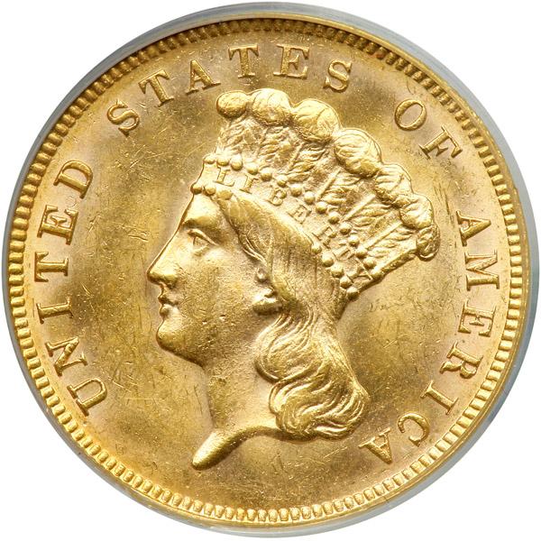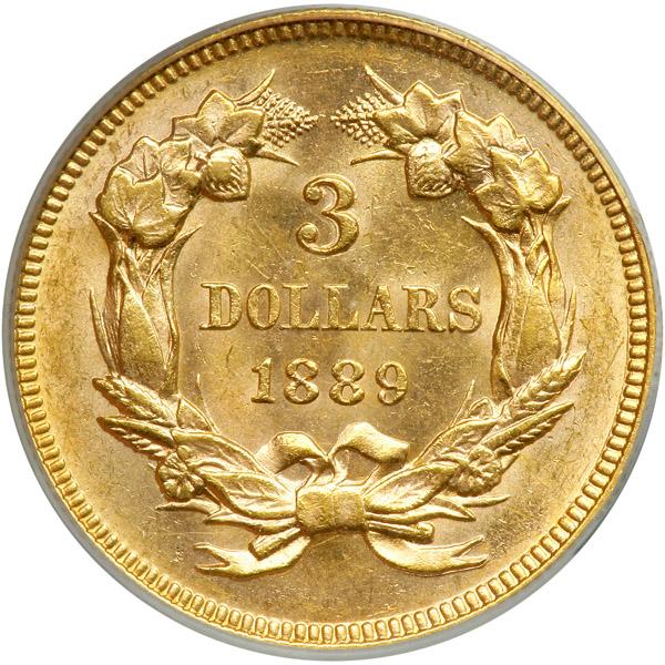 1889. PCGS graded MS-62 CAC Approved. Well struck and glistening with brilliant mint luster. Only 2,300 struck. The centers and fields are bright yellow-gold oscillating with pale reddish-gold accents. Far from the normal example of this issue is the respectable amount of detail throughout with no signs of weakness to the except, perhaps at the ribbon bow on the reverse, where detail generally lacks due to this being a high point in the design. Pop 56 (PCGS # 8011) .