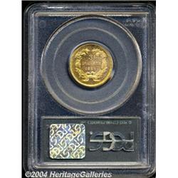 <B>1889<$3> MS63 PCGS.</B></I> Sharply struck with good luster characteristics for the grade. Original, reddish-orange and golden patina covers most of the surfaces on this popular issue. One vertical abrasion is noted in the left obverse field. Only 2,300 pieces were struck in this final year of the Three Dollar coin, but Breen suggests that many were melted in 1890 after the denomination was abolished.<BR><I>From The Garden State Collection.</B></I> <BR><BR><B>Important notice:</B> Heritage usually auctions material at the rate of 200-250 lots per hour. On some occasions eBay Live bid software or the Internet may not be able to keep up with the pace of the auction. We recommend placing a realistic absentee bid now as insurance to avoid disappointment. Occasionally the auctioneer may eliminate or reject an eBay Live bid, and the auctioneer may also reopen a lot after the close of the eBay live bidding (usually because we missed an audience bid), and may reject your bid even if it shows you as the winning bidder. By bidding via eBay Live, you agree that Heritage may award the lot to another bidder at its sole discretion under the circumstances described above or any other reasonable circumstances. Since eBay bids are not shown to us until we open the lot on the floor, we treat those bids just like floor bids. In most cases the floor responds before the eBay bid is presented to us, due to Internet lag time, so for consistency we have made it a policy that floor bids are always considered first over tie eBay live bids. Also please note that all Heritage lots purchased through eBay Live carry a 20% Buyer's Premium. Please make sure you read the Terms and Conditions before you bid.