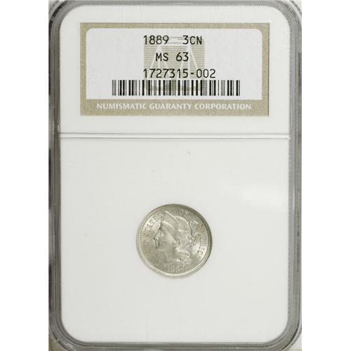 1889 3CN MS63 NGC. NGC Census: (37/83). PCGS Popul