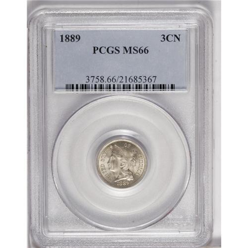 1889 3CN MS66 PCGS. Just 18,100 circulation strikes we