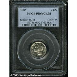 <B>1889 3CN PR66 Cameo PCGS.</B></I> Bright surfaces are dotted by a few faint speckles of gold toning. A nice cameo that is devoid of any significant marks. Population: 25 in 66, 13 finer (1/05). Lot:5835