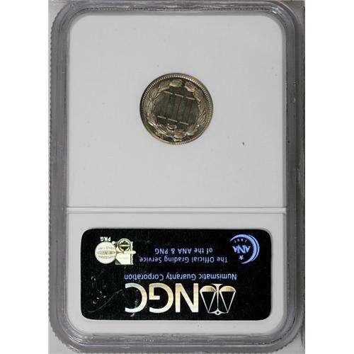 <B>1889<3CN> PR66 NGC.</B></I> Rose, gold, and gray converge on this final-year proof. The devices are quite detailed and the fields have moderate mirrors, with slight cameo contrast on the reverse.<BR><I>From The Redfjord Collection.</B></I>