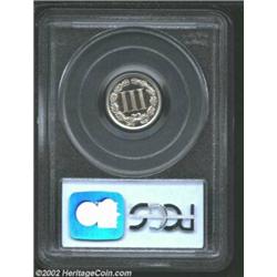 1889 3CN PR67 Cameo PCGS. A magnificent Superb Gem whose snow-white devices have impressive contrast with the reflective fields. A brilliant and seemingly pristine example whose only marker for pedigree purposes is a tiny lintmark (as struck) below the N in UNITED. Faint die clash marks (as made) are noted in the right reverse field. Population: 4 in 67, 0 finer (10/02). Important notice: We expect to be auctioning lots at the rate of 200-250 per hour. Sometimes eBay Premier live bid software cannot keep up with that pace, so we strongly recommend that you place a realistic proxy bid now as insurance to avoid disappointment. Also please note that all Heritage/CAA lots purchased through eBay Premier carry a 20% Buyer's Premium. Please make sure you read the Terms and Conditions.