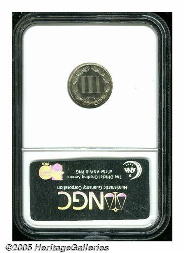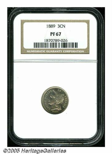 <B>1889<3CN> PR67 NGC.</B></I> A cherished example with bright luster and light orange toning. A few tiny fly-specks are noted on this truly exceptional example. Population: 42 in 67, 1 finer (6/05).