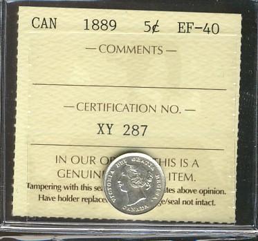 1889 5¢ ICCS EF40, brilliant and lustrous.
