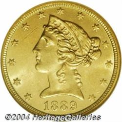 <table><tr><td><TABLE cellSpacing=0 cellPadding=0 width="100%" bgColor=#000000 border=0><TBODY> <TR><TD width="100%"><TABLE cellSpacing=1 cellPadding=3 width="100%" border=0><TBODY><TR><TD width="100%" bgColor=#79735c><FONT face=arial color=#ffffff size=3><B>Description</B> </FONT></TD></TR><TR><TD width="100%" bgColor=#ffffff><FONT face=arial size=2><B>1889 $5 MS63 NGC.</B></I> The 1889 is a difficult and generally overlooked issue with a very low mintage of only 7,565 pieces. This coin is tied with five others as second finest certified by NGC with one finer (2/04). This is a fully struck coin that has bright, shimmering, semi-prooflike fields. Surprisingly attractive for the grade, the only obvious mark is an angling abrasion in the upper left obverse field. </FONT></TD></TR></TBODY></TABLE></TD></TR></TBODY></TABLE><BR><A name=PricesRealized></A><TABLE cellSpacing=0 cellPadding=0 width="100%" bgColor=#000000 border=0><TBODY><TR><TD width="100%"><TABLE cellSpacing=1 cellPadding=3 width="100%" border=0><TBODY><TR><TD width="100%" bgColor=#79735c><A name=PR><FONT face=arial color=#ffffff size=3><B>Previous Prices from Heritage Auctions</B> </FONT></A></TD></TR><TR><TD bgColor=#f6f6ed><TABLE cellSpacing=0 cellPadding=0 width="100%" border=1><TBODY><TR><TD align=middle width="33%"><B>Date</B></TD><TD align=middle width="33%"><B>Service</B></TD><TD align=middle width="33%"><B>Price</B></TD></TR><TR bgColor=whitesmoke><TD width="33%"><B>11/01/1994</B></TD><TD width="33%">PCGS</TD><TD width="33%">$3,520.00</TD></TR></TBODY></TABLE></TD></TR><TR><TD bgColor=#ffffff><FONT face=arial size=1 ?>PLEASE NOTE: All prices realized reflect the final hammer price PLUS the buyer's premium in auctions that charge a buyer's premium. Each item has a notation at the top of the listing indicating whether that lot included a buyer's premium. Example: A item that sells with a final hammer price of $100 and a 20% buyer's premium will display with a price realized of $120. All information listed is intended to be as accurate as possible, but errors are possible. Please use this guide carefully and inform us of any inaccuracies. </FONT></TD></TR></TBODY></TABLE></TD></TR></TBODY></TABLE><BR><TABLE cellSpacing=0 cellPadding=0 width="100%" bgColor=#000000 border=0><TBODY><TR><TD width="100%"><TABLE cellSpacing=1 cellPadding=3 width="100%" border=0><TBODY><TR><TD width="100%" bgColor=#79735c colSpan=6><FONT face=arial color=#ffffff size=3><B>Price Guide*</B> </FONT></TD></TR><TR bgColor=#f6f6ed><TD align=middle><B>Grade</B> </TD><TD align=middle><B>Coin World<BR>(Trends)</B> </TD><TD align=middle><B>Numismedia<BR>Retail</B> </TD><TD align=middle><B>Numismedia<BR>Wholesale</B> </TD><TD align=middle><B>Coin<BR>Universe</B> </TD><TD align=middle><B>Heritage<BR>Value Index</B> </TD></TR><TR bgColor=#ffffff><TD align=middle>62</TD><TD align=right>$2,400.00</TD><TD align=right>---</TD><TD align=right>$1,475.00</TD><TD align=right>$2,350.00</TD><TD align=right>$1,558.33</TD></TR><TR style="FONT-WEIGHT: bold" bgColor=#cccfdd><TD align=middle>63</TD><TD align=right>$5,000.00</TD><TD align=right>---</TD><TD align=right>$3,925.00</TD><TD align=right>$2,925.00</TD><TD align=right>$2,374.17</TD></TR><TR bgColor=#ffffff><TD align=middle>64</TD><TD align=right>---</TD><TD align=right>---</TD><TD align=right>---</TD><TD align=right>---</TD><TD align=right>$2,384.08</TD></TR><TR bgColor=#ffffff><TD colSpan=6><FONT size=1>*All information listed is intended to be as accurate as possible, but errors are possible. No item may be returned or refused based on this information which is provided as a service to our customers. You should contact each pricing source directly to determine the accuracy of this information. </FONT></TD></TR></TBODY></TABLE></TD></TR></TBODY></TABLE><BR><TABLE cellSpacing=0 cellPadding=0 width="100%" bgColor=#000000 border=0><TBODY><TR><TD width="100%"><TABLE cellSpacing=1 cellPadding=3 width="100%" border=0><TBODY><TR><TD width="100%" bgColor=#79735c><FONT face=arial color=#ffffff size=3><B>Population Guide</B> </FONT></TD></TR><TR bgColor=#ffffff><TD align=middle><!-- Begin Output of Population Grid--><TABLE cellSpacing=0 cellPadding=0 width="100%" border=0><TBODY><TR><TD vAlign=center><TABLE cellSpacing=0 width="100%" border=1 cellsadding="3"><TBODY><TR><TD vAlign=center><TABLE cellSpacing=0 cellPadding=3 width="100%" border=1><TBODY><TR><TD vAlign=center align=middle bgColor=#f0f1e8 colSpan=2 <CENTER><FONT face=Arial size=2><B>PCGS Pop </B></FONT><CENTER></CENTER></TD><TD vAlign=center align=middle bgColor=#f0f1e8 colSpan=2><CENTER><FONT face=Arial size=2><B>NGC Pop</B></CENTER></FONT></TD></TR><TR><TD vAlign=center><FONT face=Arial size=2>(63)</FONT> </TD><TD vAlign=center align=right><FONT face=Arial size=2>5</FONT> </TD><TD vAlign=center><FONT face=Arial size=2>(63)</FONT> </TD><TD vAlign=center align=right><FONT face=Arial size=2>7</FONT> </TD></TR><TR><TD vAlign=center><FONT face=Arial size=2>(>63)</FONT> </TD><TD vAlign=center align=right><FONT face=Arial size=2>1</FONT> </TD><TD vAlign=center><FONT face=Arial size=2>(>63)</FONT> </TD><TD vAlign=center align=right><FONT face=Arial size=2>1</FONT> </TD></TR></TBODY></TABLE></TD></TR></TBODY></TABLE></TD></TR></TBODY></TABLE><!-- End Output of Population Grid--></TD></TR></TBODY></TABLE></TD></TR></TBODY></TABLE><BR><TABLE cellSpacing=0 cellPadding=0 width="100%" bgColor=#000000 border=0><TBODY><TR> <font color='#000000'><span style='background-color: #FFFFFF'><td bgcolor='#FFFFFE'> Important notice: Heritage usually auctions material at the rate of 200-250 lots per hour. On some occasions eBay Live bid software or the Internet may not be able to keep up with the pace of the auction. We recommend placing a realistic absentee bid now as insurance to avoid disappointment. Occasionally the auctioneer may eliminate or reject an eBay Live bid, and the auctioneer may also reopen a lot after the close of the eBay live bidding (usually because we missed an audie