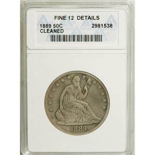 1889 50C --Cleaned--ANACS. Fine 12 Details. NGC Cen