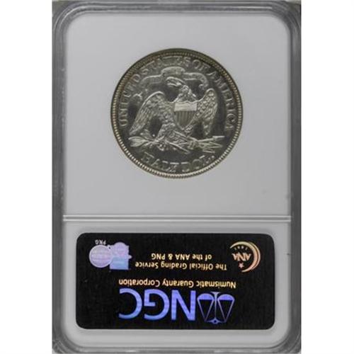 <B>1889 50C PR62 NGC.</B></I> Decisively struck with strong reflectivity beneath layers of cloud-gray patina. The lower obverse rim displays an arc of reddish-orange patina. Light, scattered hairlines and a few pinpoint contact marks limit the grade of this otherwise pleasing late-date proof Seated half.<BR><BR><B>Coin Engraver:</B> Christian Gobrecht<BR><BR><b>Shipping:</b> Coins & Currency (<a target="_blank" href="http://www.heritageauctions.com/common/shipping.php">view shipping information</a>)