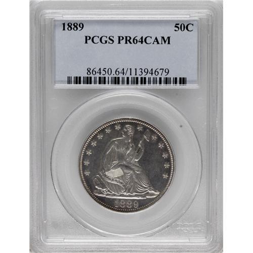 <B>1889 50C PR64 Cameo PCGS.</B></I> The proof mintage was about 6% of the small business strike mintage in this year. This piece boasts silver-white centers with good reflectivity, excellent contrast, and a tinge of lilac at the rims. Population: 7 in 64, 1 finer (3/07).<BR><BR><b>Shipping:</b> Coins & Currency (<a target="_blank" href="http://www.heritageauctions.com/common/shipping.php">view shipping information</a>)