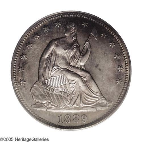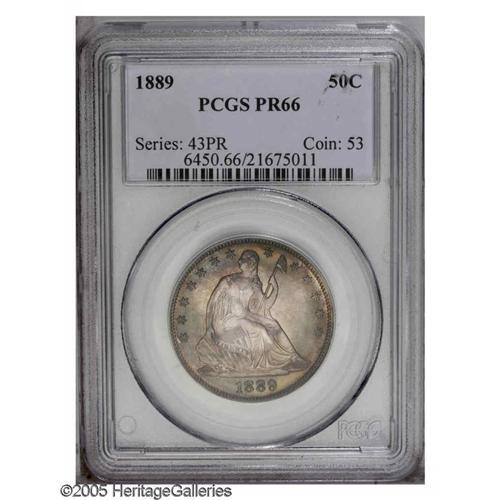 1889 50C PR66 PCGS. The obverse exhibits ocean-blue, r 1889[50C] PR66 PCGS.