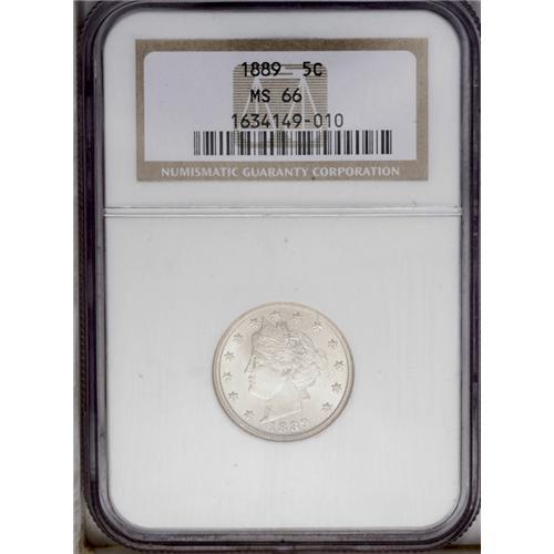 1889 5C MS66 NGC. Lustrous surfaces are visited by occ 1889[5C] MS66 NGC.