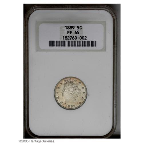 1889 5C PR65 NGC. Luminous proof surfaces exhibit spla 1889[5C] PR65 NGC.