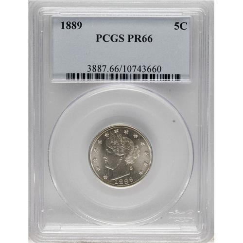 1889 5C PR66 PCGS. This proof displays strong rotation