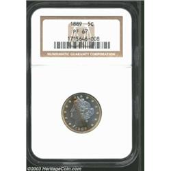 <TABLE cellSpacing=0 cellPadding=0 width="100%" bgColor=#000000 border=0><TBODY><TR><TD width="100%"><TABLE cellSpacing=1 cellPadding=3 width="100%" border=0><TBODY><TR><TD width="100%" bgColor=#79735c><FONT face=arial color=#ffffff size=3><B>Description</B> </FONT></TD></TR><TR><TD width="100%" bgColor=#ffffff><FONT face=arial size=2><B>1889 5C PR67 NGC.</B></I> An absolutely splendid proof striking of this issue that doesn't need cameo contrast to prove its worthiness as a type coin. This piece is just what a Superb type coin should be: deeply mirrored in the fields, lacking any technical demerits, and exquisitely toned--in this case in mellow shades of lilac and golden. A very worthwhile proof type coin that deserves consideration by anyone assembling a high grade proof type set. Population: 13 in 67, 1 finer (7/03). </FONT></TD></TR></TBODY></TABLE></TD></TR></TBODY></TABLE><BR><A name=PricesRealized></A><TABLE cellSpacing=0 cellPadding=0 width="100%" bgColor=#000000 border=0><TBODY><TR><TD width="100%"><TABLE cellSpacing=1 cellPadding=3 width="100%" border=0><TBODY><TR><TD width="100%" bgColor=#79735c><A name=PR><FONT face=arial color=#ffffff size=3><B>Previous Prices from Heritage Auctions</B> </FONT></A></TD></TR><TR><TD bgColor=#f6f6ed><TABLE cellSpacing=0 cellPadding=0 width="100%" border=1><TBODY><TR><TD align=middle width="33%"><B>Date</B></TD><TD align=middle width="33%"><B>Service</B></TD><TD align=middle width="33%"><B>Price</B></TD></TR><TR bgColor=whitesmoke><TD width="33%"><B>01/11/2003</B></TD><TD width="33%">PCGS</TD><TD width="33%">$4,140.00</TD></TR><TR bgColor=whitesmoke><TD width="33%"><B>11/01/2001</B></TD><TD width="33%">NGC</TD><TD width="33%">$1,438.00</TD></TR></TBODY></TABLE></TD></TR><TR><TD bgColor=#ffffff><FONT face=arial size=1 ?>PLEASE NOTE: All prices realized reflect the final hammer price PLUS the buyer's premium in auctions that charge a buyer's premium. Each item has a notation at the top of the listing indicating whether that lot included a buyer's premium. Example: A item that sells with a final hammer price of $100 and a 20% buyer's premium will display with a price realized of $120. All information listed is intended to be as accurate as possible, but errors are possible. Please use this guide carefully and inform us of any inaccuracies. </FONT></TD></TR></TBODY></TABLE></TD></TR></TBODY></TABLE><BR><TABLE cellSpacing=0 cellPadding=0 width="100%" bgColor=#000000 border=0><TBODY><TR><TD width="100%"><TABLE cellSpacing=1 cellPadding=3 width="100%" border=0><TBODY><TR><TD width="100%" bgColor=#79735c colSpan=6><FONT face=arial color=#ffffff size=3><B>Price Guide*</B> </FONT></TD></TR><TR bgColor=#f6f6ed><TD align=middle><B>Grade</B> </TD><TD align=middle><B>Coin World<BR>(Trends)</B> </TD><TD align=middle><B>Numismedia<BR>Retail</B> </TD><TD align=middle><B>Numismedia<BR>Wholesale</B> </TD><TD align=middle><B>Coin<BR>Universe</B> </TD><TD align=middle><B>Heritage<BR>Value Index</B> </TD></TR><TR bgColor=#ffffff><TD align=middle>66</TD><TD align=right>---</TD><TD align=right>---</TD><TD align=right>$800.00</TD><TD align=right>$825.00</TD><TD align=right>$576.25</TD></TR><TR style="FONT-WEIGHT: bold" bgColor=#cccfdd><TD align=middle>67</TD><TD align=right>---</TD><TD align=right>---</TD><TD align=right>$2,530.00</TD><TD align=right>$2,400.00</TD><TD align=right>$1,780.00</TD></TR><TR bgColor=#ffffff><TD align=middle>68</TD><TD align=right>---</TD><TD align=right>---</TD><TD align=right>$6,150.00</TD><TD align=right>---</TD><TD align=right>---</TD></TR><TR bgColor=#ffffff><TD colSpan=6><FONT size=1>*All information listed is intended to be as accurate as possible, but errors are possible. No item may be returned or refused based on this information which is provided as a service to our customers. You should contact each pricing source directly to determine the accuracy of this information. </FONT></TD></TR></TBODY></TABLE></TD></TR></TBODY></TABLE><BR><TABLE cellSpacing=0 cellPadding=0 width="100%" bgColor=#000000 border=0><TBODY><TR><TD width="100%"><TABLE cellSpacing=1 cellPadding=3 width="100%" border=0><TBODY><TR><TD width="100%" bgColor=#79735c><FONT face=arial color=#ffffff size=3><B>Population Guide</B> </FONT></TD></TR><TR bgColor=#ffffff><TD align=middle><!-- Begin Output of Population Grid--><TABLE cellSpacing=0 cellPadding=0 width="100%" border=0><TBODY><TR><TD vAlign=center><TABLE cellSpacing=0 width="100%" border=1 cellsadding="3"><TBODY><TR><TD vAlign=center><TABLE cellSpacing=0 cellPadding=3 width="100%" border=1><TBODY><TR><TD vAlign=center align=middle bgColor=#f0f1e8 colSpan=2 <CENTER><FONT face=Arial size=2><B>PCGS Pop </B></FONT><CENTER></CENTER></TD><TD vAlign=center align=middle bgColor=#f0f1e8 colSpan=2><CENTER><FONT face=Arial size=2><B>NGC Pop</B></CENTER></FONT></TD></TR><TR><TD vAlign=center><FONT face=Arial size=2>(67)</FONT> </TD><TD vAlign=center align=right><FONT face=Arial size=2>4</FONT> </TD><TD vAlign=center><FONT face=Arial size=2>(67)</FONT> </TD><TD vAlign=center align=right><FONT face=Arial size=2>13</FONT> </TD></TR><TR><TD vAlign=center><FONT face=Arial size=2>(>67)</FONT> </TD><TD vAlign=center align=right><FONT face=Arial size=2>0</FONT> </TD><TD vAlign=center><FONT face=Arial size=2>(>67)</FONT> </TD><TD vAlign=center align=right><FONT face=Arial size=2>1</FONT> </TD></TR></TBODY></TABLE></TD></TR></TBODY></TABLE></TD></TR></TBODY></TABLE><!-- End Output of Population Grid--> Important notice: Heritage usually auctions material at the rate of 200-250 lots per hour. On some occasions eBay Live bid software or the Internet may not be able to keep up with the pace of the auction. We recommend placing a realistic absentee bid now as insurance to avoid disappointment. Occasionally the auctioneer may eliminate or reject an eBay Live bid, and the auctioneer may also reopen a lot after the close of the eBay live bidding (usually because we missed an audience bid), and may reject your bid even if it shows you as the 