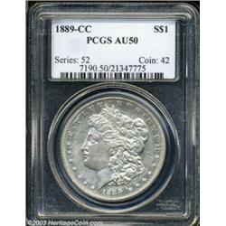 <table><tr><td><TABLE cellSpacing=0 cellPadding=0 width="100%" bgColor=#000000 border=0><TBODY> <TR><TD width="100%"><TABLE cellSpacing=1 cellPadding=3 width="100%" border=0><TBODY><TR><TD width="100%" bgColor=#79735c><FONT face=arial color=#ffffff size=3><B>Description</B> </FONT></TD></TR><TR><TD width="100%" bgColor=#ffffff><FONT face=arial size=2><B>1889-CC $1 AU50 PCGS.</B></I> Displaying a light silver-gray color and ample luster remaining in the fields, this is a very collectible example of this scarcest Carson City dollar, almost always seen in low grades. Both sides are surprisingly free from large or distracting abrasions. Scarce in this grade. </FONT></TD></TR></TBODY></TABLE></TD></TR></TBODY></TABLE><BR><A name=PricesRealized></A><TABLE cellSpacing=0 cellPadding=0 width="100%" bgColor=#000000 border=0><TBODY><TR><TD width="100%"><TABLE cellSpacing=1 cellPadding=3 width="100%" border=0><TBODY><TR><TD width="100%" bgColor=#79735c><A name=PR><FONT face=arial color=#ffffff size=3><B>Previous Prices from Heritage Auctions</B> </FONT></A></TD></TR><TR><TD bgColor=#f6f6ed><TABLE cellSpacing=0 cellPadding=0 width="100%" border=1><TBODY><TR><TD align=middle width="33%"><B>Date</B></TD><TD align=middle width="33%"><B>Service</B></TD><TD align=middle width="33%"><B>Price</B></TD></TR><TR bgColor=whitesmoke><TD width="33%"><B>05/22/2001</B></TD><TD width="33%">ANACS</TD><TD width="33%">$1,600.00</TD></TR><TR bgColor=whitesmoke><TD width="33%"><B>05/02/2000</B></TD><TD width="33%">NGC</TD><TD width="33%">$2,025.00</TD></TR><TR bgColor=whitesmoke><TD width="33%"><B>07/29/2003</B></TD><TD width="33%">NGC</TD><TD width="33%">$3,910.00</TD></TR><TR bgColor=whitesmoke><TD width="33%"><B>05/03/2003</B></TD><TD width="33%">ANACS</TD><TD width="33%">$4,140.00</TD></TR><TR bgColor=whitesmoke><TD width="33%"><B>11/23/2002</B></TD><TD width="33%">ANACS</TD><TD width="33%">$2,070.00</TD></TR><TR bgColor=whitesmoke><TD width="33%"><B>11/23/2002</B></TD><TD width="33%">ANACS</TD><TD width="33%">$1,782.50</TD></TR><TR bgColor=whitesmoke><TD width="33%"><B>07/30/2002</B></TD><TD width="33%">ANACS</TD><TD width="33%">$2,012.50</TD></TR><TR bgColor=whitesmoke><TD width="33%"><B>01/12/2002</B></TD><TD width="33%">ANACS</TD><TD width="33%">$2,185.00</TD></TR><TR bgColor=whitesmoke><TD width="33%"><B>11/15/2001</B></TD><TD width="33%">ANACS</TD><TD width="33%">$1,667.50</TD></TR><TR bgColor=whitesmoke><TD width="33%"><B>05/31/2001</B></TD><TD width="33%">ANACS</TD><TD width="33%">$1,725.00</TD></TR><TR bgColor=whitesmoke><TD width="33%"><B>04/14/2000</B></TD><TD width="33%">PCGS</TD><TD width="33%">$2,070.00</TD></TR><TR bgColor=whitesmoke><TD width="33%"><B>06/04/1999</B></TD><TD width="33%">ANACS</TD><TD width="33%">$1,897.50</TD></TR><TR bgColor=whitesmoke><TD width="33%"><B>09/21/1996</B></TD><TD width="33%">PCGS</TD><TD width="33%">$2,035.00</TD></TR><TR bgColor=whitesmoke><TD width="33%"><B>01/04/1996</B></TD><TD width="33%">NGC</TD><TD width="33%">$1,870.00</TD></TR><TR bgColor=whitesmoke><TD width="33%"><B>01/04/1995</B></TD><TD width="33%">ANACS</TD><TD width="33%">$1,980.00</TD></TR><TR bgColor=whitesmoke><TD width="33%"><B>08/06/2001</B></TD><TD width="33%">ANACS</TD><TD width="33%">$2,300.00</TD></TR><TR bgColor=whitesmoke><TD width="33%"><B>03/01/1998</B></TD><TD width="33%">ANACS</TD><TD width="33%">$2,420.00</TD></TR><TR bgColor=whitesmoke><TD width="33%"><B>11/01/1998</B></TD><TD width="33%">ANACS</TD><TD width="33%">$3,047.00</TD></TR><TR bgColor=whitesmoke><TD width="33%"><B>05/01/1999</B></TD><TD width="33%">ANACS</TD><TD width="33%">$2,013.00</TD></TR><TR bgColor=whitesmoke><TD width="33%"><B>05/01/1995</B></TD><TD width="33%">PCGS</TD><TD width="33%">$1,980.00</TD></TR><TR bgColor=whitesmoke><TD width="33%"><B>03/01/1998</B></TD><TD width="33%">ANACS</TD><TD width="33%">$2,420.00</TD></TR></TBODY></TABLE></TD></TR><TR><TD bgColor=#ffffff><FONT face=arial size=1 ?>PLEASE NOTE: All prices realized reflect the final hammer price PLUS the buyer's premium in auctions that charge a buyer's premium. Each item has a notation at the top of the listing indicating whether that lot included a buyer's premium. Example: A item that sells with a final hammer price of $100 and a 20% buyer's premium will display with a price realized of $120. All information listed is intended to be as accurate as possible, but errors are possible. Please use this guide carefully and inform us of any inaccuracies. </FONT></TD></TR></TBODY></TABLE></TD></TR></TBODY></TABLE><BR><TABLE cellSpacing=0 cellPadding=0 width="100%" bgColor=#000000 border=0><TBODY><TR><TD width="100%"><TABLE cellSpacing=1 cellPadding=3 width="100%" border=0><TBODY><TR><TD width="100%" bgColor=#79735c colSpan=6><FONT face=arial color=#ffffff size=3><B>Price Guide*</B> </FONT></TD></TR><TR bgColor=#f6f6ed><TD align=middle><B>Grade</B> </TD><TD align=middle><B>Coin World<BR>(Trends)</B> </TD><TD align=middle><B>Numismedia<BR>Retail</B> </TD><TD align=middle><B>Numismedia<BR>Wholesale</B> </TD><TD align=middle><B>Coin<BR>Universe</B> </TD><TD align=middle><B>Heritage<BR>Value Index</B> </TD></TR><TR bgColor=#ffffff><TD align=middle>45</TD><TD align=right>---</TD><TD align=right>---</TD><TD align=right>---</TD><TD align=right>---</TD><TD align=right>$2,303.33</TD></TR><TR style="FONT-WEIGHT: bold" bgColor=#cccfdd><TD align=middle>50</TD><TD align=right>$5,000.00</TD><TD align=right>---</TD><TD align=right>$2,300.00</TD><TD align=right>---</TD><TD align=right>$3,329.17</TD></TR><TR bgColor=#ffffff><TD align=middle>53</TD><TD align=right>---</TD><TD align=right>---</TD><TD align=right>$2,725.00</TD><TD align=right>---</TD><TD align=right>$3,927.23</TD></TR><TR bgColor=#ffffff><TD colSpan=6><FONT size=1>*All information listed is intended to be as accurate as possible, but errors are possible. No item may be returned or refused based on this information which is provided as a service to our customers. You should contact each pricing source directly to det