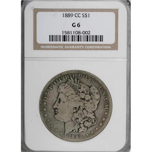 <B>1889-CC $1 G6 NGC.</B></I> NGC Census: (48/2112). PCGS Population (100/3111). Mintage: 350,000. Numismedia Wsl. Price for NGC/PCGS coin in G6 : $463. (#7190)<BR><BR><B>Coin Engraver:</B> George T. Morgan<BR><BR><b>Shipping:</b> Coins & Currency (<a target="_blank" href="http://www.heritageauctions.com/common/shipping.php">view shipping information</a>)