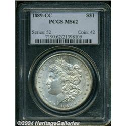 <table><tbody><tr><td><table> <TR><TD width="100%"><TABLE cellSpacing=1 cellPadding=3 width="100%" border=0><TBODY><TR><TD width="100%" bgColor=#79735c><FONT face=arial color=#ffffff size=3><B>Description</B> </FONT></TD></TR><TR><TD width="100%" bgColor=#ffffff><FONT face=arial size=2><B>1889-CC $1 MS62 PCGS.</B></I> Light golden-gray toning is seen partially coating each side, lending a matte-like appearance to this Mint State example. The reverse shows a little more flash, with an unusually sharp strike for the grade. A high grade and very collectible example of this semi-key issue from the Carson City Mint. The coin is generally clean, with no heavy marks, just the typical number of trivial blemishes for a coin graded MS62. </FONT></TD></TR></TBODY></TABLE></TD></TR></TBODY></TABLE><BR><A name=PricesRealized></A><TABLE cellSpacing=0 cellPadding=0 width="100%" bgColor=#000000 border=0><TBODY><TR><TD width="100%"><TABLE cellSpacing=1 cellPadding=3 width="100%" border=0><TBODY><TR><TD width="100%" bgColor=#79735c><A name=PR><FONT face=arial color=#ffffff size=3><B>Previous Prices from Heritage Auctions</B> </FONT></A></TD></TR><TR><TD bgColor=#f6f6ed><TABLE cellSpacing=0 cellPadding=0 width="100%" border=1><TBODY><TR><TD align=middle width="33%"><B>Date</B></TD><TD align=middle width="33%"><B>Service</B></TD><TD align=middle width="33%"><B>Price</B></TD></TR><TR bgColor=whitesmoke><TD width="33%"><B>02/15/1999</B></TD><TD width="33%">ANACS</TD><TD width="33%">$7,844.00</TD></TR><TR bgColor=whitesmoke><TD width="33%"><B>08/08/2001</B></TD><TD width="33%">ANACS</TD><TD width="33%">$7,475.00</TD></TR><TR bgColor=whitesmoke><TD width="33%"><B>08/13/1999</B></TD><TD width="33%">NGC</TD><TD width="33%">$8,050.00</TD></TR><TR bgColor=whitesmoke><TD width="33%"><B>07/26/1994</B></TD><TD width="33%">NGC</TD><TD width="33%">$7,040.00</TD></TR><TR bgColor=whitesmoke><TD width="33%"><B>01/01/1998</B></TD><TD width="33%">ANACS</TD><TD width="33%">$8,250.00</TD></TR><TR bgColor=whitesmoke><TD width="33%"><B>09/01/1998</B></TD><TD width="33%">PCGS</TD><TD width="33%">$9,775.00</TD></TR><TR bgColor=whitesmoke><TD width="33%"><B>11/01/1996</B></TD><TD width="33%">PCGS</TD><TD width="33%">$10,450.00</TD></TR></TBODY></TABLE></TD></TR><TR><TD bgColor=#ffffff><FONT face=arial size=1 ?>PLEASE NOTE: All prices realized reflect the final hammer price PLUS the buyer's premium in auctions that charge a buyer's premium. Each item has a notation at the top of the listing indicating whether that lot included a buyer's premium. Example: A item that sells with a final hammer price of $100 and a 20% buyer's premium will display with a price realized of $120. All information listed is intended to be as accurate as possible, but errors are possible. Please use this guide carefully and inform us of any inaccuracies. </FONT></TD></TR></TBODY></TABLE></TD></TR></TBODY></TABLE><BR><TABLE cellSpacing=0 cellPadding=0 width="100%" bgColor=#000000 border=0><TBODY><TR><TD width="100%"><TABLE cellSpacing=1 cellPadding=3 width="100%" border=0><TBODY><TR><TD width="100%" bgColor=#79735c colSpan=6><FONT face=arial color=#ffffff size=3><B>Price Guide*</B> </FONT></TD></TR><TR bgColor=#f6f6ed><TD align=middle><B>Grade</B> </TD><TD align=middle><B>Coin World<BR>(Trends)</B> </TD><TD align=middle><B>Numismedia<BR>Retail</B> </TD><TD align=middle><B>Numismedia<BR>Wholesale</B> </TD><TD align=middle><B>Coin<BR>Universe</B> </TD><TD align=middle><B>Heritage<BR>Value Index</B> </TD></TR><TR bgColor=#ffffff><TD align=middle>61</TD><TD align=right>---</TD><TD align=right>---</TD><TD align=right>$10,500.00</TD><TD align=right>$13,500.00</TD><TD align=right>$9,757.50</TD></TR><TR style="FONT-WEIGHT: bold" bgColor=#cccfdd><TD align=middle>62</TD><TD align=right>$14,000.00</TD><TD align=right>---</TD><TD align=right>$11,500.00</TD><TD align=right>$16,500.00</TD><TD align=right>$12,086.67</TD></TR><TR bgColor=#ffffff><TD align=middle>63</TD><TD align=right>$20,000.00</TD><TD align=right>---</TD><TD align=right>$16,500.00</TD><TD align=right>$26,000.00</TD><TD align=right>$15,920.00</TD></TR><TR bgColor=#ffffff><TD colSpan=6><FONT size=1>*All information listed is intended to be as accurate as possible, but errors are possible. No item may be returned or refused based on this information which is provided as a service to our customers. You should contact each pricing source directly to determine the accuracy of this information. </FONT></TD></TR></TBODY></TABLE></TD></TR></TBODY></TABLE><BR><TABLE cellSpacing=0 cellPadding=0 width="100%" bgColor=#000000 border=0><TBODY><TR><TD width="100%"><TABLE cellSpacing=1 cellPadding=3 width="100%" border=0><TBODY><TR><TD width="100%" bgColor=#79735c><FONT face=arial color=#ffffff size=3><B>Population Guide</B> </FONT></TD></TR><TR bgColor=#ffffff><TD align=middle><!-- Begin Output of Population Grid--><TABLE cellSpacing=0 cellPadding=0 width="100%" border=0><TBODY><TR><TD vAlign=center><TABLE cellSpacing=0 width="100%" border=1 cellsadding="3"><TBODY><TR><TD vAlign=center><TABLE cellSpacing=0 cellPadding=3 width="100%" border=1><TBODY><TR><TD vAlign=center align=middle bgColor=#f0f1e8 colSpan=2 <CENTER><FONT face=Arial size=2><B>PCGS Pop </B></FONT><CENTER></CENTER></TD><TD vAlign=center align=middle bgColor=#f0f1e8 colSpan=2><CENTER><FONT face=Arial size=2><B>NGC Pop</B></CENTER></FONT></TD></TR><TR><TD vAlign=center><FONT face=Arial size=2>(62)</FONT> </TD><TD vAlign=center align=right><FONT face=Arial size=2>66</FONT> </TD><TD vAlign=center><FONT face=Arial size=2>(62)</FONT> </TD><TD vAlign=center align=right><FONT face=Arial size=2>70</FONT> </TD></TR><TR><TD vAlign=center><FONT face=Arial size=2>(>62)</FONT> </TD><TD vAlign=center align=right><FONT face=Arial size=2>93</FONT> </TD><TD vAlign=center><FONT face=Arial size=2>(>62)</FONT> </TD><TD vAlign=center align=right><FONT face=Arial size=2>78</FONT> </TD></TR></TBODY></TABLE></TD></TR></TBODY></TABLE></TD></TR></TBODY></TABLE><!-- End Output of Popu