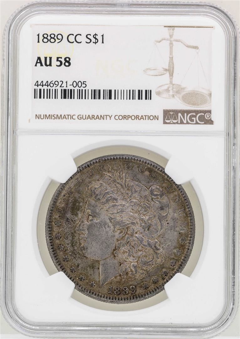 One 1889-CC $1 Morgan Silver Coin NGC AU58. NGC Certified.