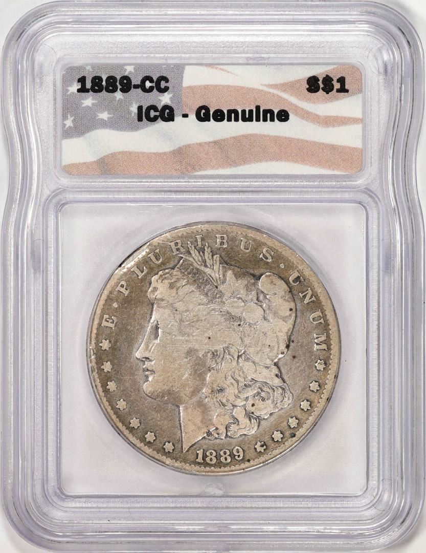 One 1889-CC $1 Morgan Silver Dollar Coin ICG Genuine. ICG Certified.