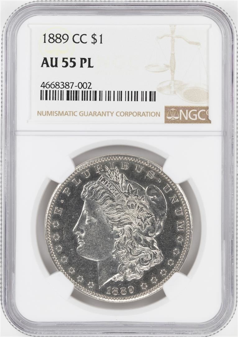 One 1889-CC $1 Morgan Silver Dollar Coin NGC AU55 PL. NGC Certified.
