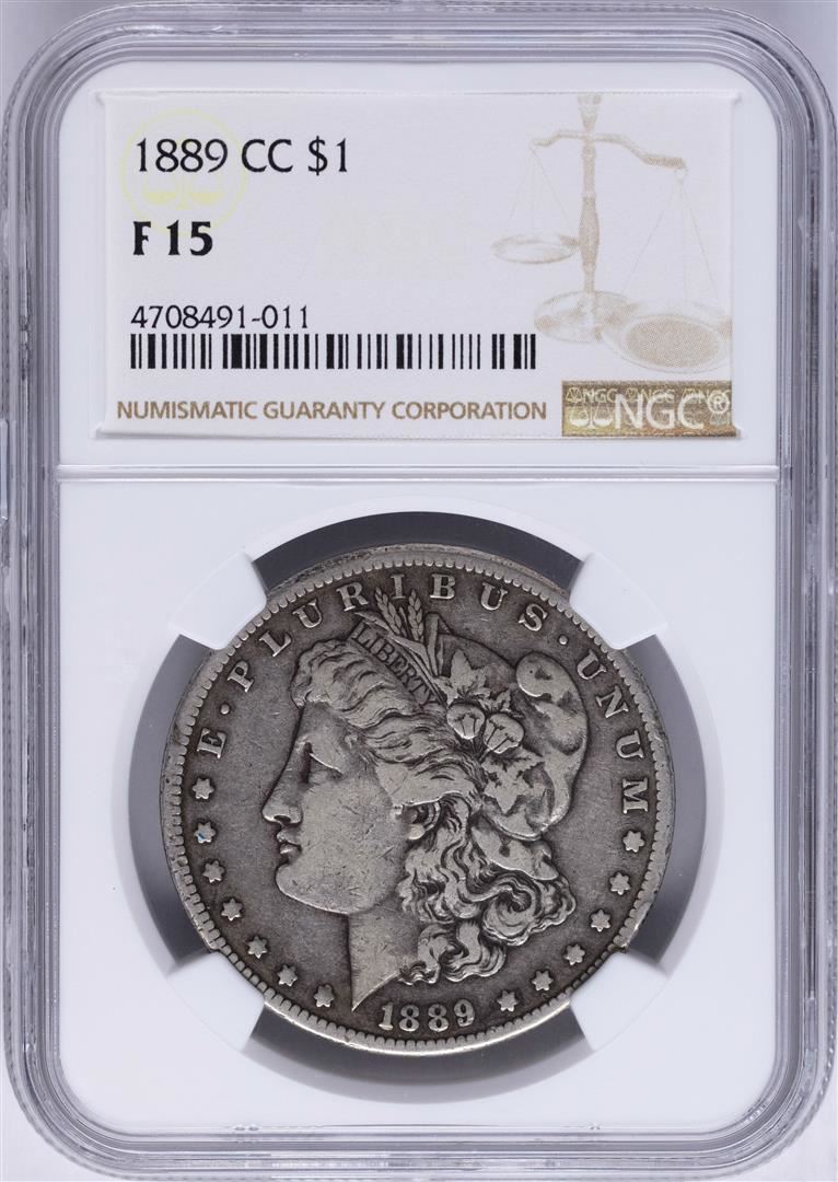 One 1889-CC $1 Morgan Silver Dollar Coin NGC F15. NGC Certified.