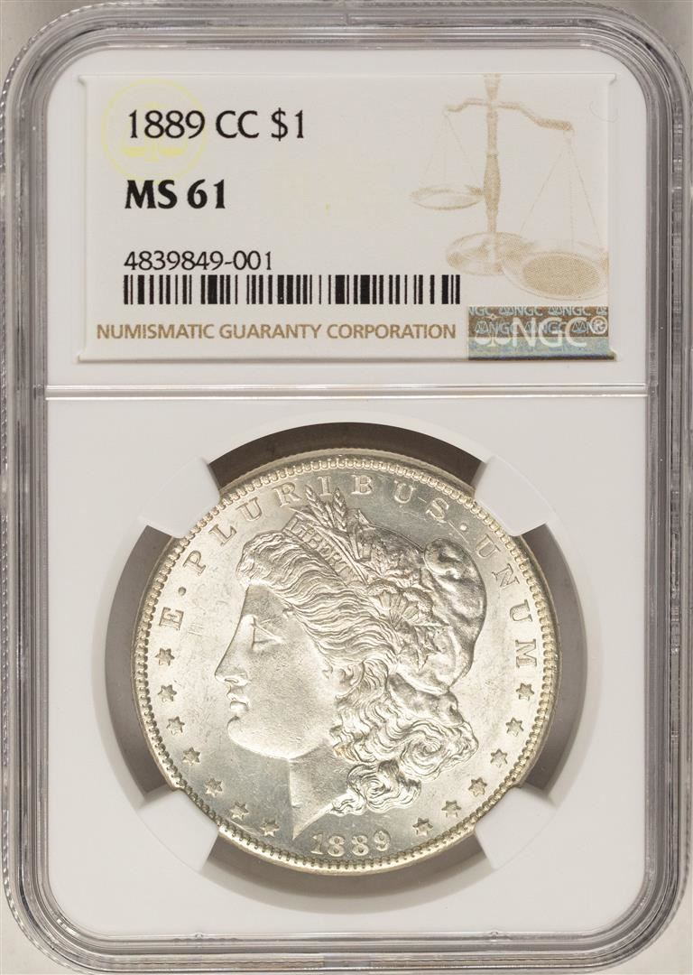 One 1889-CC $1 Morgan Silver Dollar Coin NGC MS61. NGC Certified.