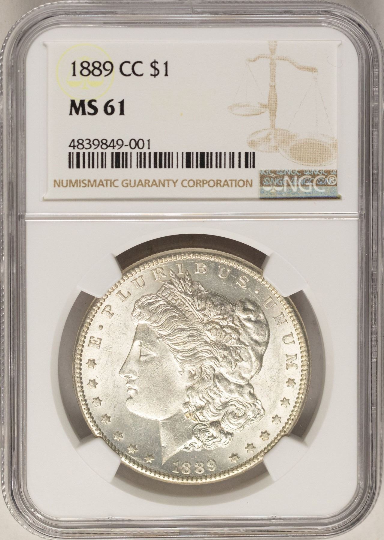 One 1889-CC $1 Morgan Silver Dollar Coin NGC MS61.
