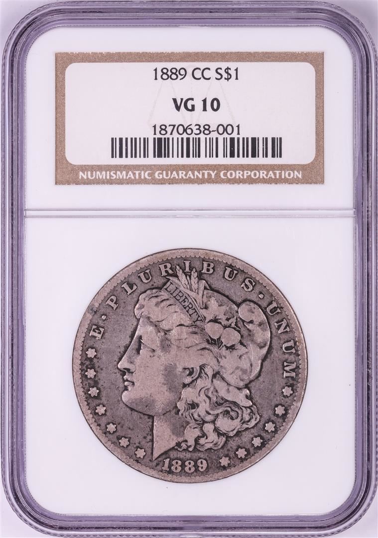 One 1889-CC $1 Morgan Silver Dollar Coin NGC VG10. NGC Certified.