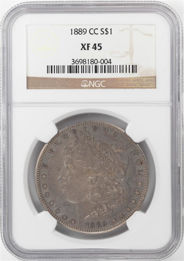 One 1889-CC $1 Morgan Silver Dollar Coin NGC XF45. NGC Certified.