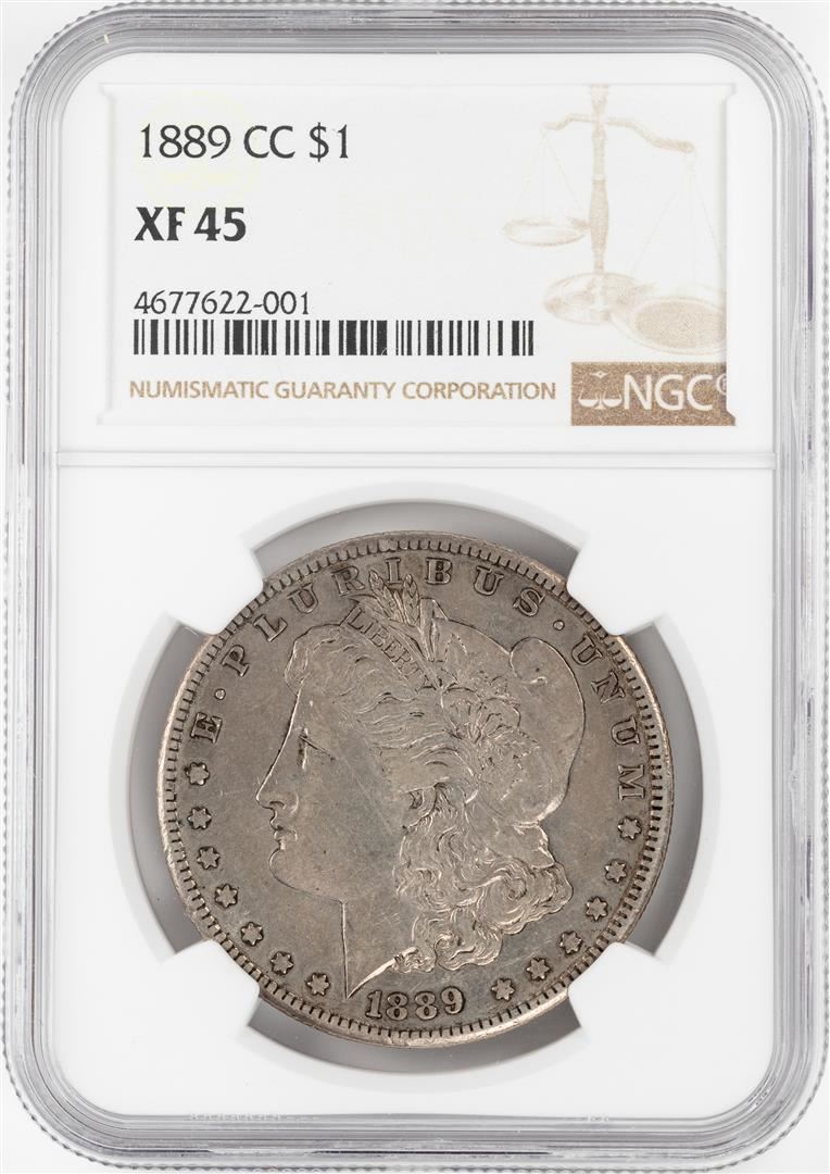 One 1889-CC $1 Morgan Silver Dollar Coin NGC XF45. NGC Certified.